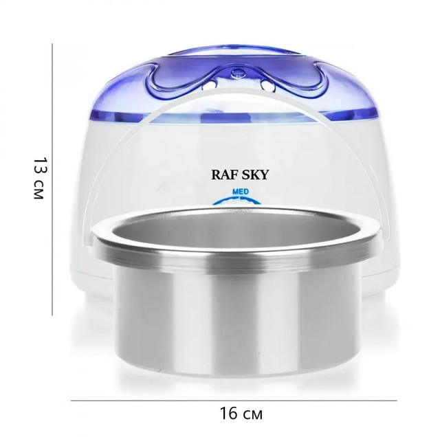 Баночний воскоплав RAF SKY 400 мл на 65W з регулятором потужності призначений як для домашнього, так і для професійного застосування і дозволяє нагрівати віск у банках (400 мл), таблетках, гранулах, дисках, а також парафін. Комплектація приладу включає спеціальну металеву ємність для різного виду восків та парафінів. Пристрій має плавну регуляцію температур від 35 до 100°С з термостійким корпусом, що витримує перегрів до 360°С. Перевагою моделі є наявність режиму підтримки температури, який збереже задані параметри протягом сеансу.