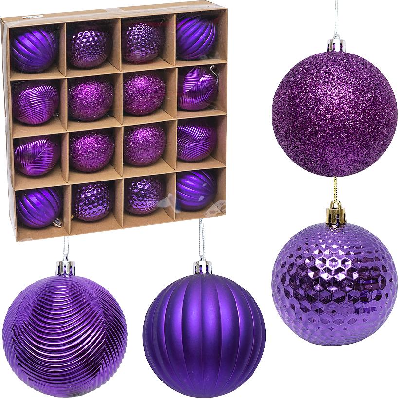 Набір ялинкових іграшок у формі кульок "Фіолетовий з гліттером" включає 16 іграшок. Всі кульки мають діаметр 8 см і виконані в фіолетовому кольорі з гліттером, що надає їм блиску та ефекту свята.
