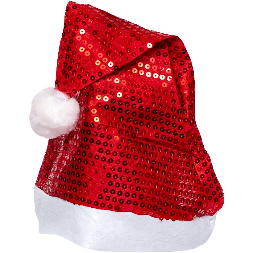 Новорічна шапка Діда Мороза з паєтками висотою 35 см 6241-4 Червоний