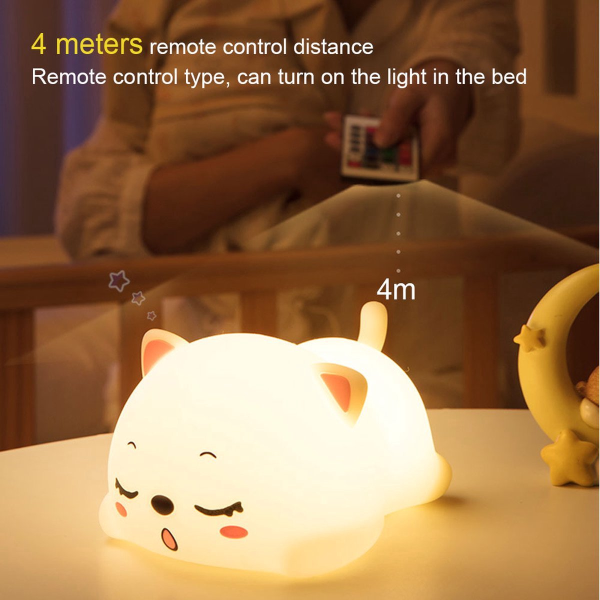 М'яким, приглушеним світлом лампа у вигляді кошеняти огорне дитячу кімнату чарівним світлом, подарувавши дитині море радості та почуття захищеності. З цим чудовим казковим персонажем, що світиться, дитині буде зовсім не страшно засинати вночі.