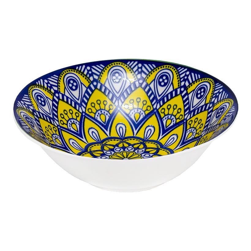 Глибока керамічна тарілка на 500 мл із синьо-жовтим візерунком розміром 17,5*5,5 см 4806-8 в упаковці 3 шт