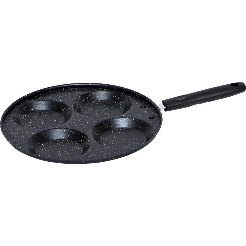 Сковорода з поділом та поглибленнями для яєчні та млинців з антипригарним покриттям.