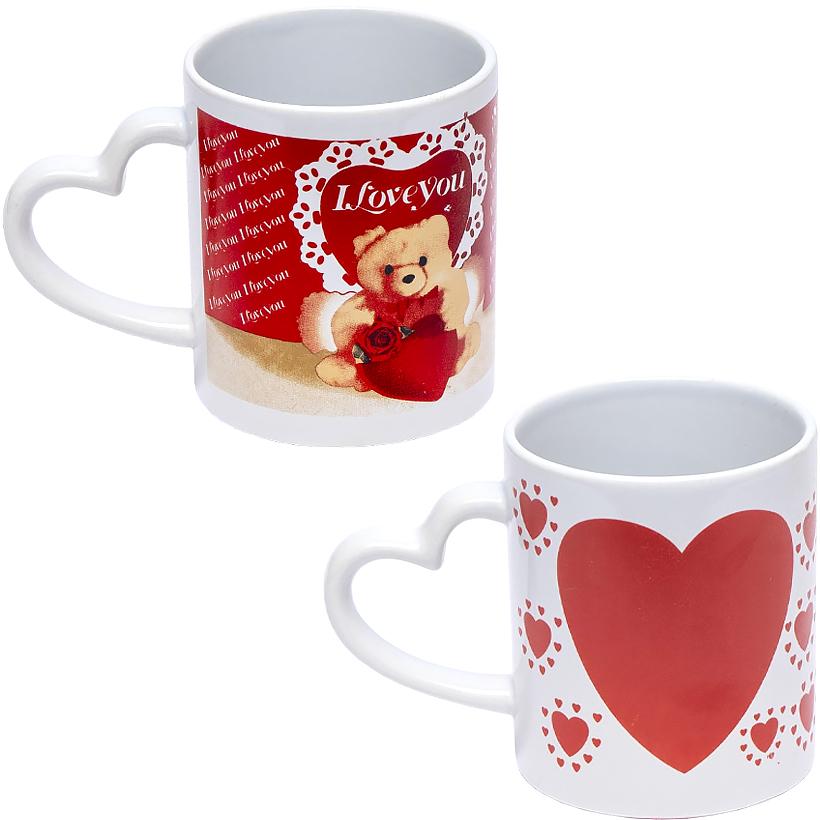 Чашка фаянс на 300 мл з малюнком Ведмедика та серця та ручкою у вигляді серця 4265-1 в упаковці 12 шт