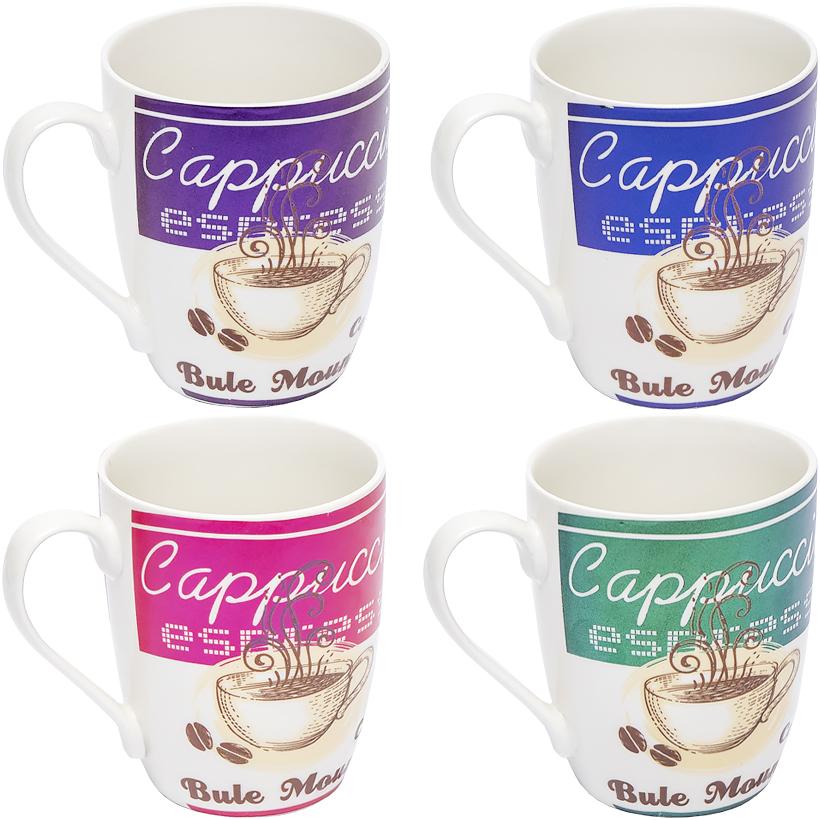 Чашка фаянс на 300 мл у різних кольорах з написами 4265-8 в упаковці 12 шт