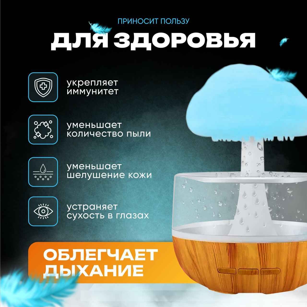 Унікальний електричний зволожувач повітря Гриб – "Cloud Rain Humidifier". Це дифузор та нічник гриб з водою чудово підходить для квартири, будинку чи офісу, забезпечує вам комфорт та здоровий мікроклімат. Даний ароматизатор повітря або аромозволожувач має сучасний і стильний вигляд, що нагадує хмару з дощем, що не тільки пожвавлює ваш інтер'єр, але також додає атмосферності в кімнаті.