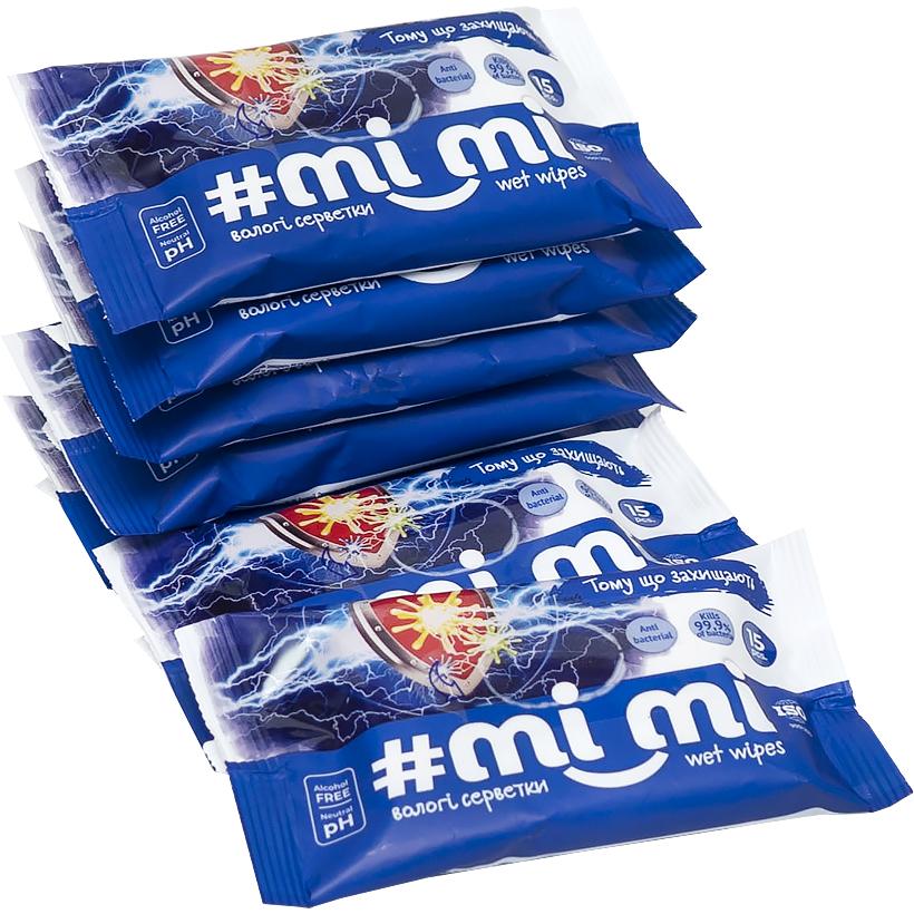 Вологі серветки антибактеріальні для шкіри рук та тіла #mi_mі в упаковці 10 шт