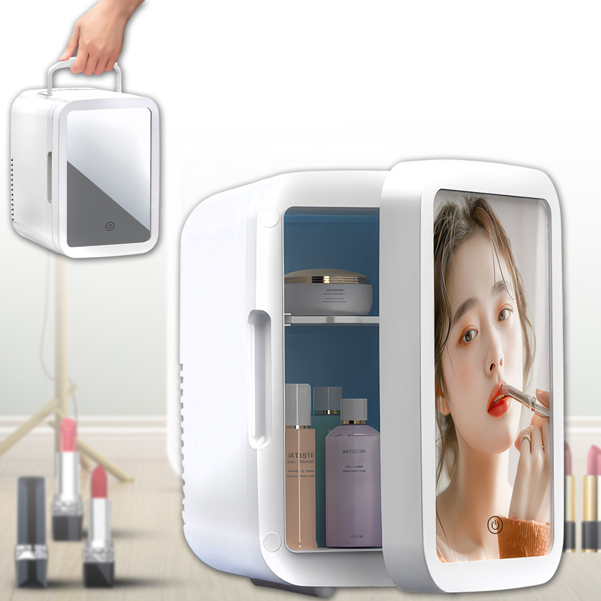 Портативний косметичний холодильник на 4 л з дзеркалом з підсвічуванням Білий 12V-220V