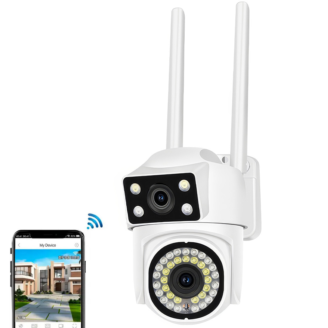 Вулична поворотна IP-камера з подвійним об'єктивом (загальна роздільна здатність 8 Мп: 4+4 Мп) забезпечує якісне та стабільне відеоспостереження у будь-який час доби. Технологія стиснення H.264 знижує навантаження на мережу, а завдяки Wi-Fi та можливості підключення по кабелю, встановлення та підключення камери максимально зручні.