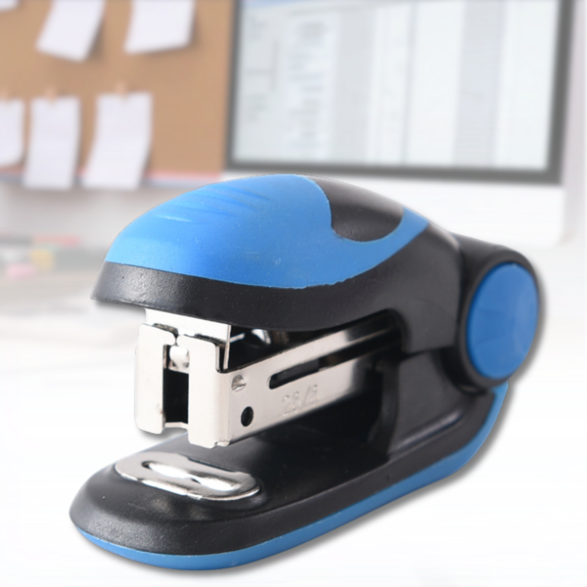 Компактний степлер синього кольору — ідеальний помічник для повсякденної роботи в офісі, будинку чи школі. Завдяки своїм мініатюрним розмірам він легко поміщається в пенал, шухляду стола або сумку, не займаючи багато місця. Простий та надійний механізм забезпечує акуратне та міцне скріплення листів, що робить його незамінним у будь-яких ситуаціях, де важливо зберегти документи в порядку.